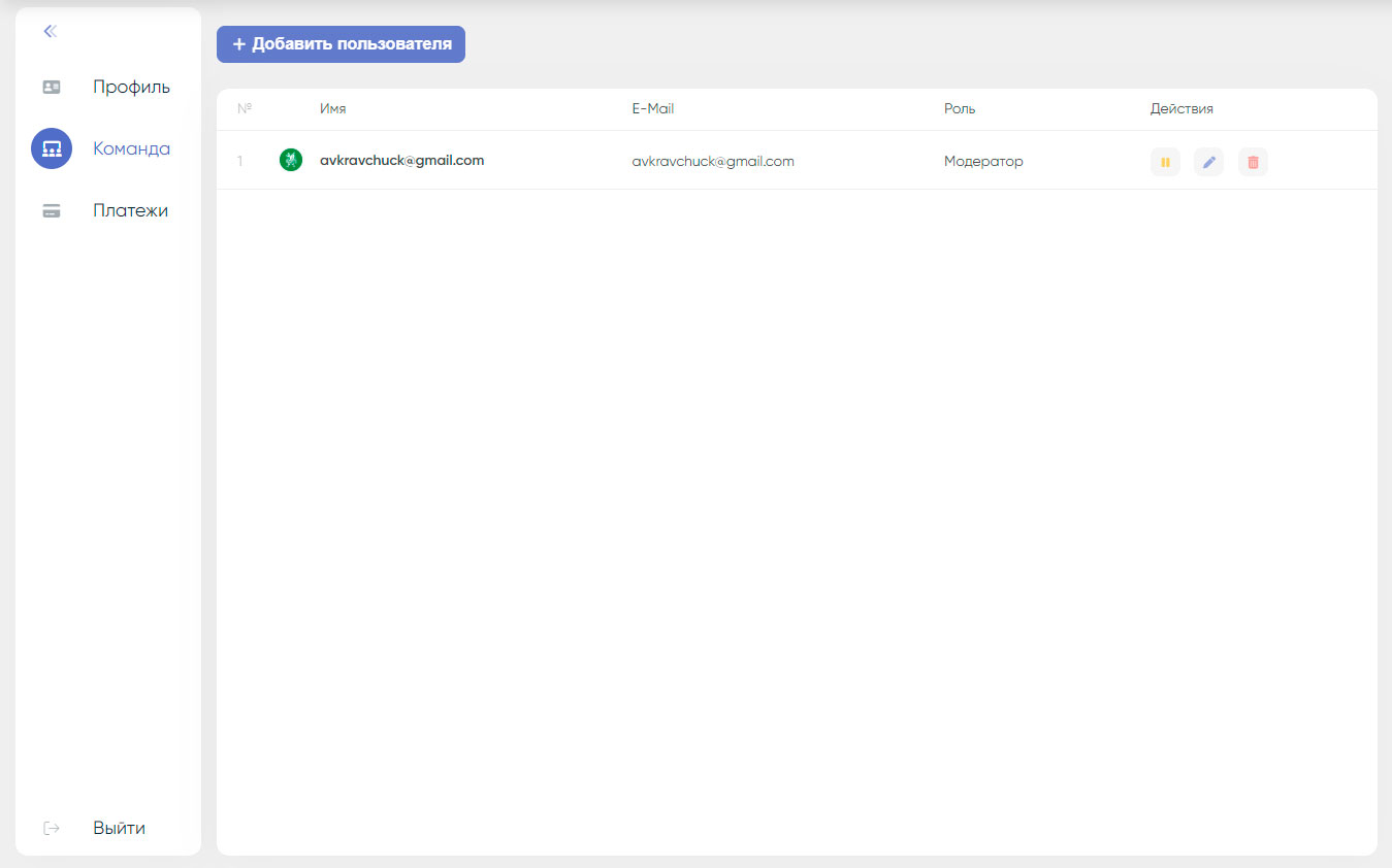 Также, участие пользователя в команде можно поставить на паузу или удалить нажав соответствующие значки в столбце "Действия".