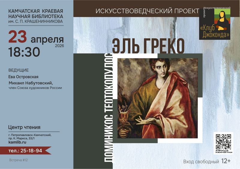 В Камчатской краевой научной библиотеке им. С.П. Крашенинникова состоится встреча, посвященная жизни и творчеству великого испанского художника Эль Греко.