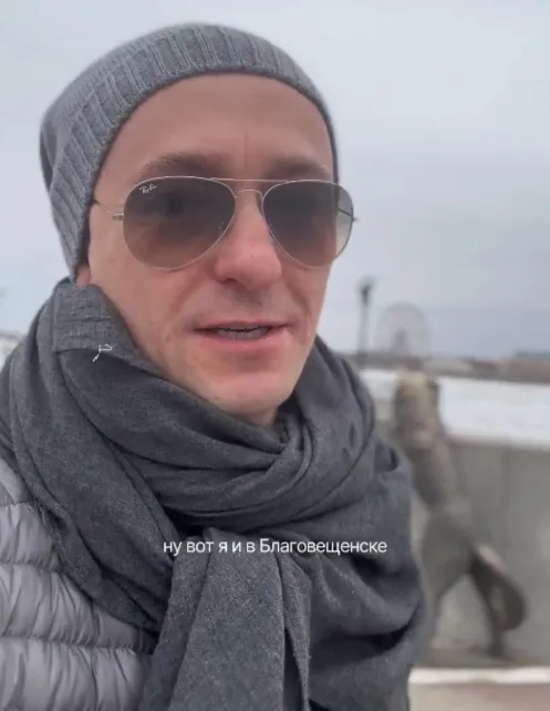 Народный артист России Сергей Безруков прибыл в Благовещенск для открытия «Эхо Большого детского фестиваля». Сергей Безруков прогулялся по набережной Амура в Благовещенске и обратил внимание на начавшийся ледоход.