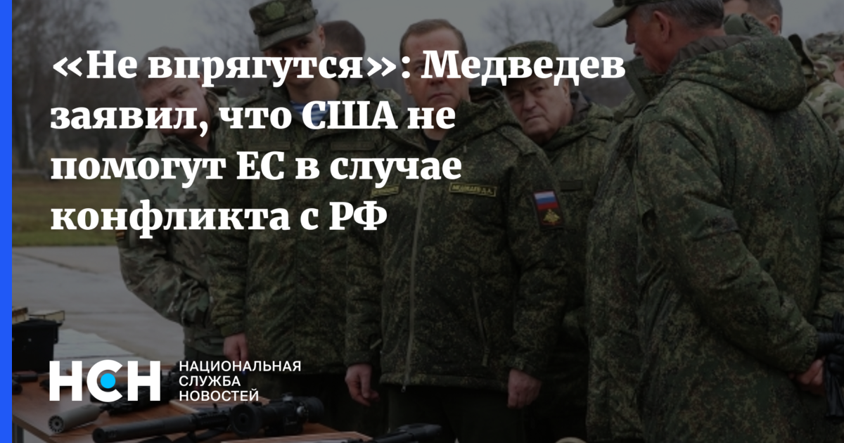 Медведев заявил, что США не вступятся за страны ЕС в случае их конфликта с Россией, так как Европа не представляет интереса для США как союзник из-за своих экономических показателей и миграционной ситуации.