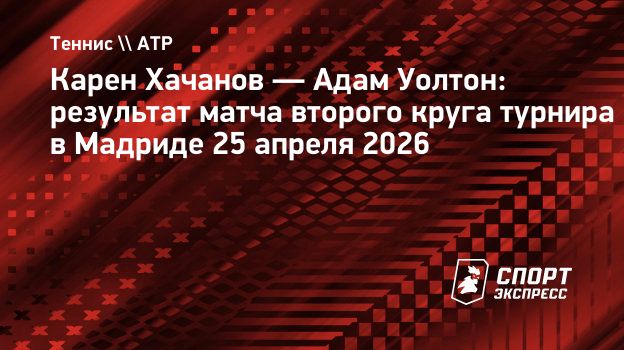 Карен Хачанов обыграл Адама Уолтона во втором круге турнира в Мадриде, победив в двух сетах со счётом 6:2, 6:3.