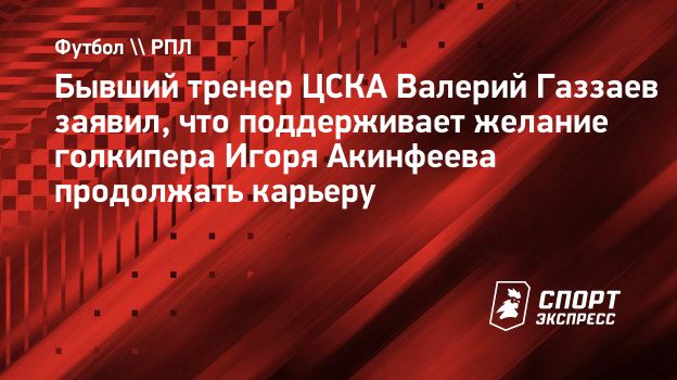 Вратарь ЦСКА Игорь Акинфеев завершил сезон из-за травмы и не поможет команде в оставшихся матчах. Он также заявил, что не завершает карьеру и планирует восстановиться к следующему сезону.